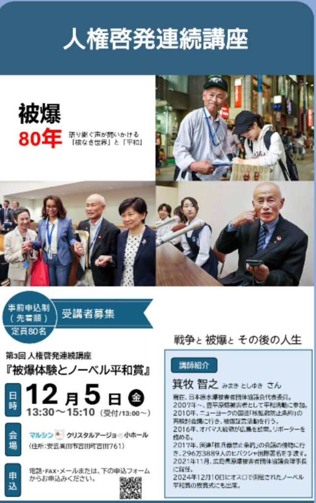 本日、広島県原爆被害者団体協議会、いわゆる被団協の理事長である、箕牧智之さんの講演会がありました。
